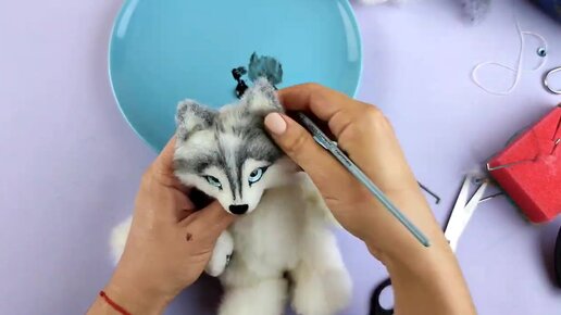Мех+шерсть. Делаем милого хаски в смешанной технике. Окраска меха, ушки, подушечки на лапках - всё и сразу!