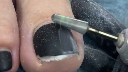 Снятие гель лака твердосплавной фрезой в педикюре.