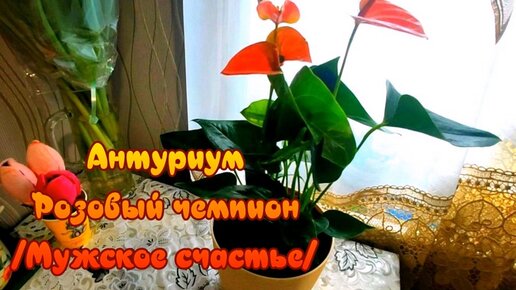 АНТУРИУМ - "РОЗОВЫЙ ЧЕМПИОН". ПЕРЕСАДКА после покупки при цветении пока молодой. "Мужское счастье"