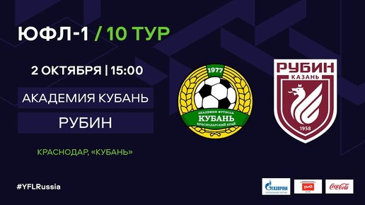 ЮФЛ-1. Академия Кубань (Краснодар) - Рубин (Казань). 10-й тур.