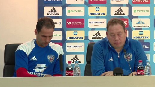 Предматчевая пресс-конференция главного тренера сборной России Леонида Слуцкого и Романа Широкова