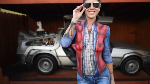 Голая девушка в нарисованной одежде.