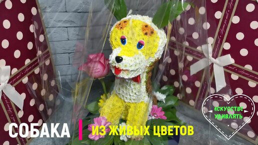 Собака из живых цветов. Фигуры из цветов в виде животных. Игрушки из цветов