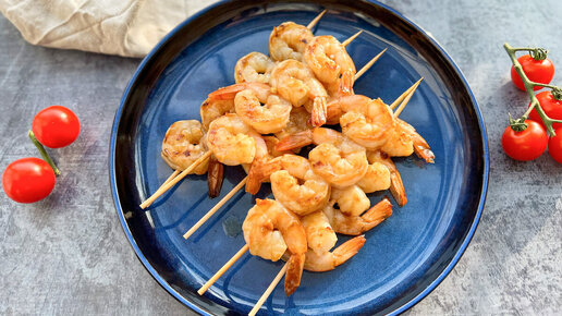 Шашлычки из креветок на сковороде (жареные креветки на шпажках)