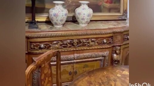 Роскошный столовый комплект: стол , четыре стула, комод. Италия, середина XX века.