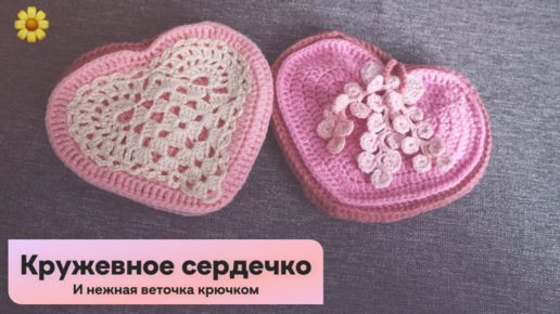 Кружевное сердечко и нежная веточка, для украшения валентинок-сердечек. Вяжем крючком.