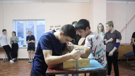 Девочка соревнуется на равных с парнями в турнире по армрестлингу