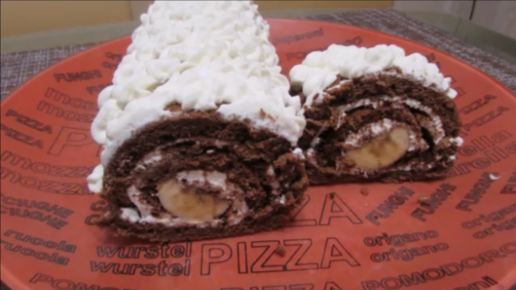 Шоколадный рулет с бананом / Простой и вкусный рецепт