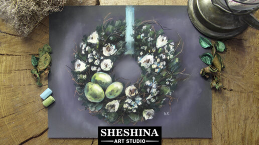 Как нарисовать Пасхальный венок сухой пастелью на наждачной бумаге 🎨 Шешина Екатерина
