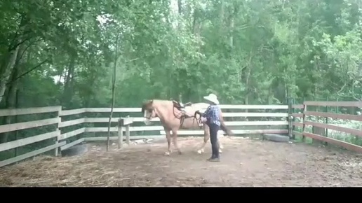 Видео иллюстрация к ответу "Как безопасно научить лошадь ходить на вожжах, если нет помощника"
