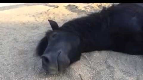 Лошадь спит и видит сны.
