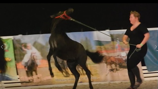 Жеребенок бьет человека.