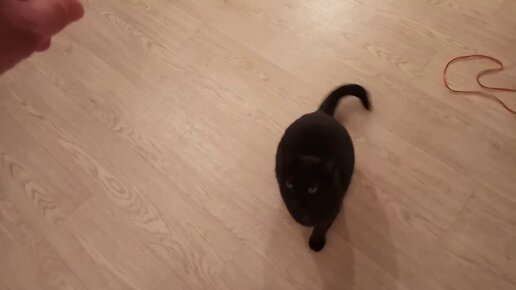 Кошка выполняет команду "Сидеть!" за почесушки.