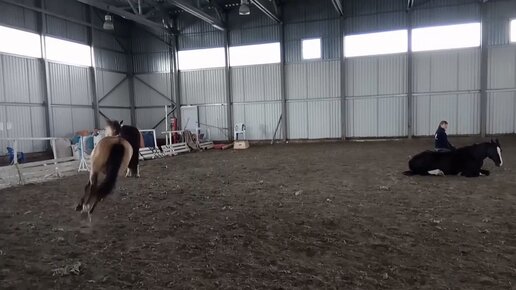 Тоня, Гуля и Принц. Дистанционное управление лошадью:)