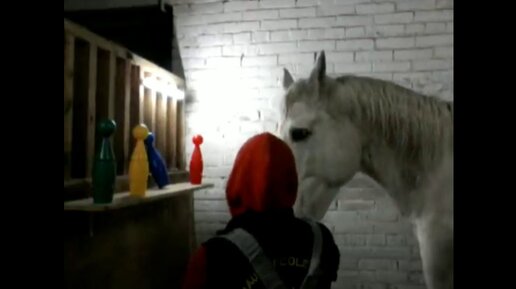 Лошадь отличает цвета. Синий и красный.