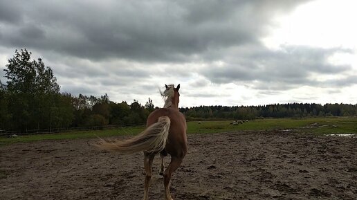 Молодая лошадь ускакала в поле. Смотреть до конца!!!:3