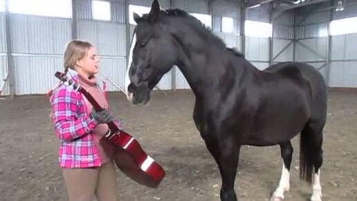 Лошади знакомятся и учатся с гитарой