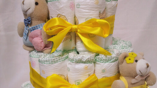 Торт из подгузников и мишек.Торт на выписку своими руками.Торт новорожденному на выписку