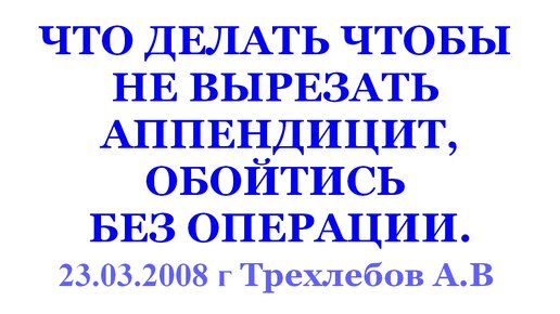 ЧТО ДЕЛАТЬ ЧТОБЫ НЕ ВЫРЕЗАТЬ АППЕНДИЦИТ, ОБОЙТИСЬ БЕЗ ОПЕРАЦИИ.( Трехлебов 23.03.2008 г 2022,2023 ) https://my-files.su/90m2r4