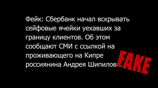 Фейк: Сбербанк начал вскрывать сейфовые ячейки уехавших за границу клиентов.