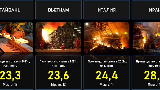 Топ 30 стран по производству стали в 2021 году. И где в этом рейтинге Россия