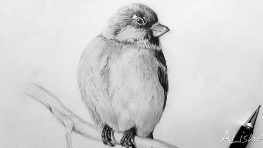 Увидев сегодня утром на улице милого воробышка, сидевшего на ветке, решила нарисовать его