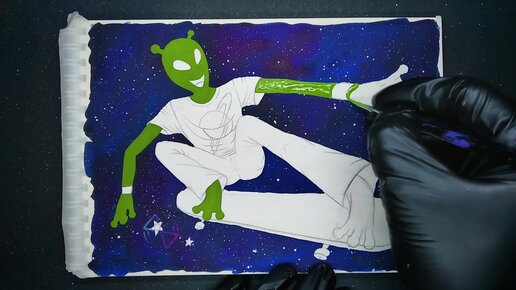 Инопланетный скейтер (рисунок темперой)
