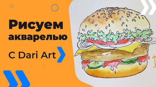 Бесплатный урок рисования! Рисуем гамбургер! Акварельный скетчинг для начинающих!
