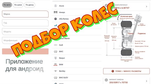 Как подобрать колеса на автомобиль - Wheel Size для андроид.