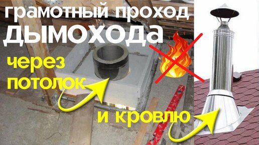 Проход ДЫМОХОДА БАНИ через потолок и кровлю. НАДЁЖНО, ПОЖАРОБЕЗОПАСНО