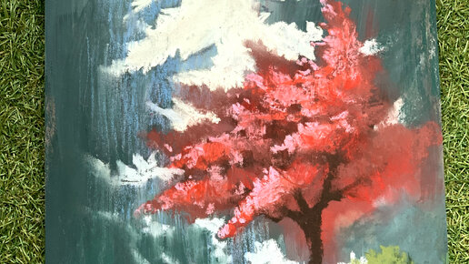 Цветущее дерево пастелью. Абразив/алкогольный подмалёвок