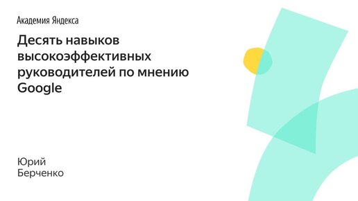 007. Десять навыков высокоэффективных руководителей по мнению Google – Юрий Берченко