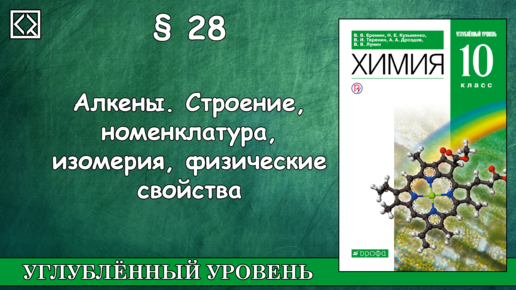 10 класс § 28 "Алкены. Строение, номенклатура, изомерия, физические свойства"