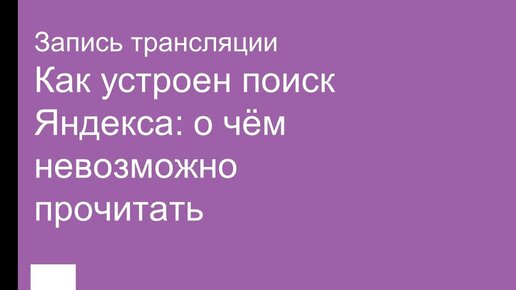 Как устроен поиск Яндекса: о чём невозможно прочитать. Запись трансляции