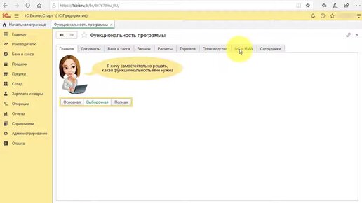 Далее: Как включить раздел Производство? В программе 1С:БизнесСтарт