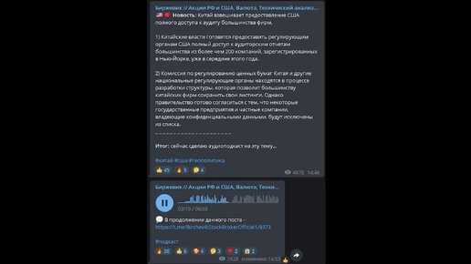 💬 В продолжении прошлого поста "Новость: Китай взвешивает предоставление США полного доступа к аудиту большинства фирм."