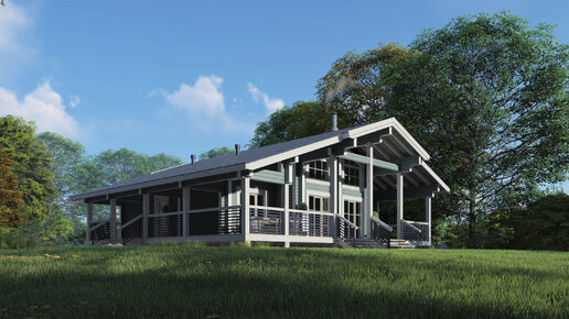 Проект 1-этажного дома из бруса в стиле Шале. NORD CHALET 95+50