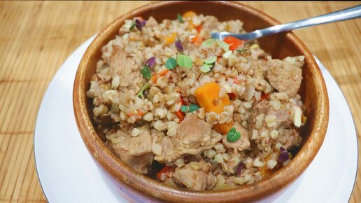 Тушеная голень индейки с гречкой и овощами. Быстро и просто