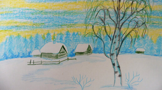 Как нарисовать зимний пейзаж карандашами легко и просто