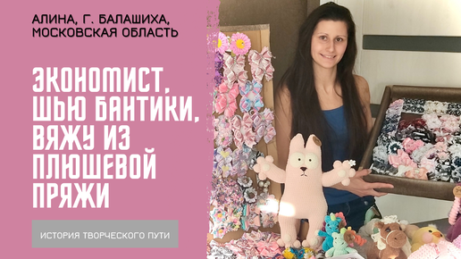Работаю в офисе | рукодельничаю | вяжу крючком игрушки из плюшевой пряжи | шью бантики для девочек | аксессуары для волос