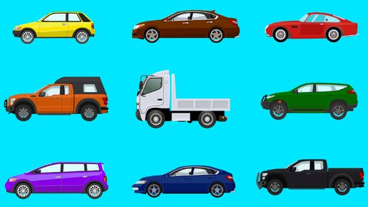 Коллекция разноцветных машин. Учим Цвета. Развивающий мультик про машинки для детей