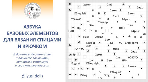 Азбука базовых элементов для вязания спицами и крючком. С английскими аббревиатурами.