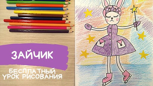 Заяц рисунок. Заяц рисунок для детей. Фигурное катание рисовать Детские рисунки для детей. Карандаши и краски.