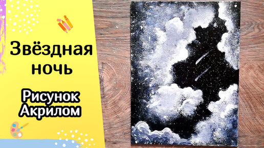 ЗВЁЗДНАЯ НОЧЬ | Рисуем кухонной губкой космос, облака и звёзды