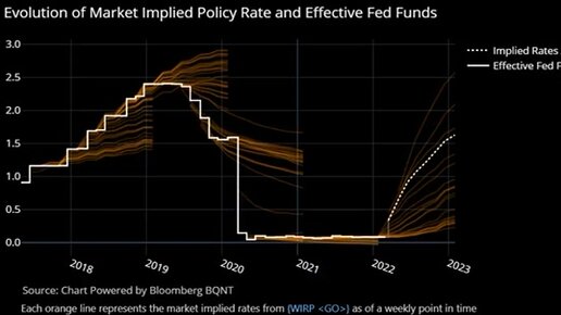 Эволюция ставки и прогноза ставки ФРС США
