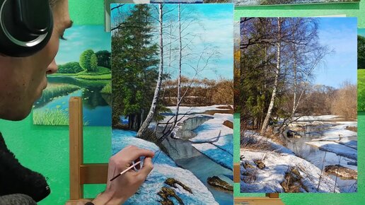 "Март"весенний пейзаж маслом|Oil Painting Time Lapse Spring oil landscape