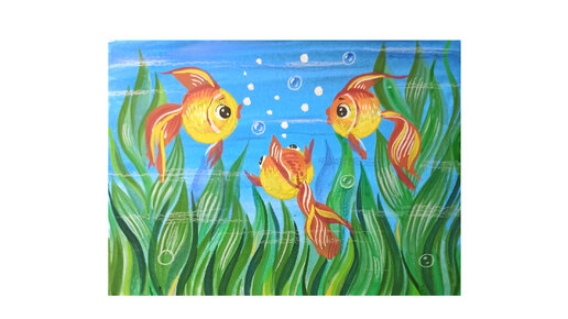 Золотые рыбки - рисунок гуашью и кистью-губкой.