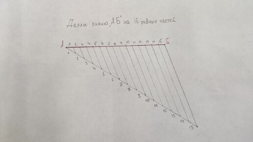 Делим линию "АБ" на 15 равных частей