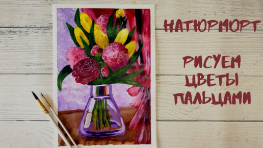Натюрморт с цветами. Простая техника рисования цветов пальцами.