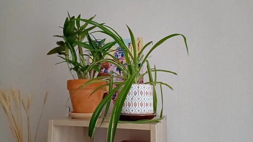 Цветочные полупотери. Хлорофитум и дендробиум пострадали от кошачьего налета.